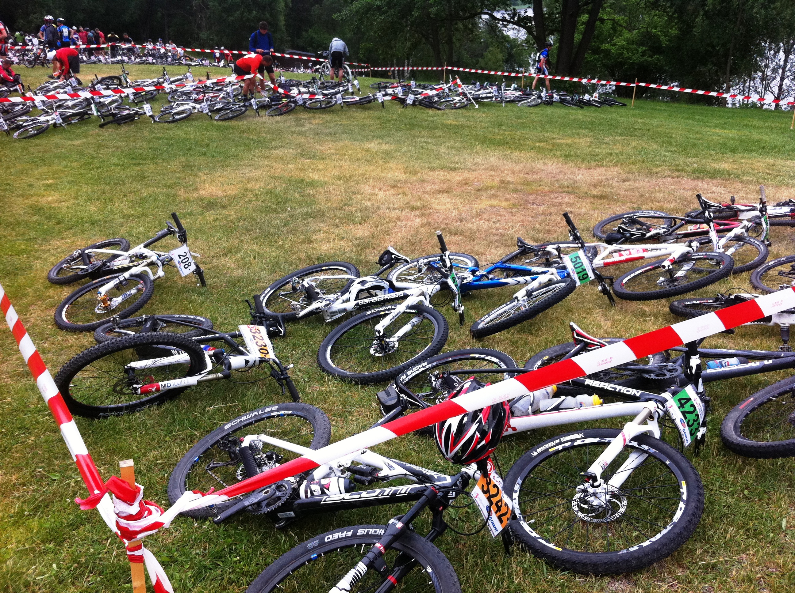 Så här pinkar man revir vid starten i ett MTB-långlopp.