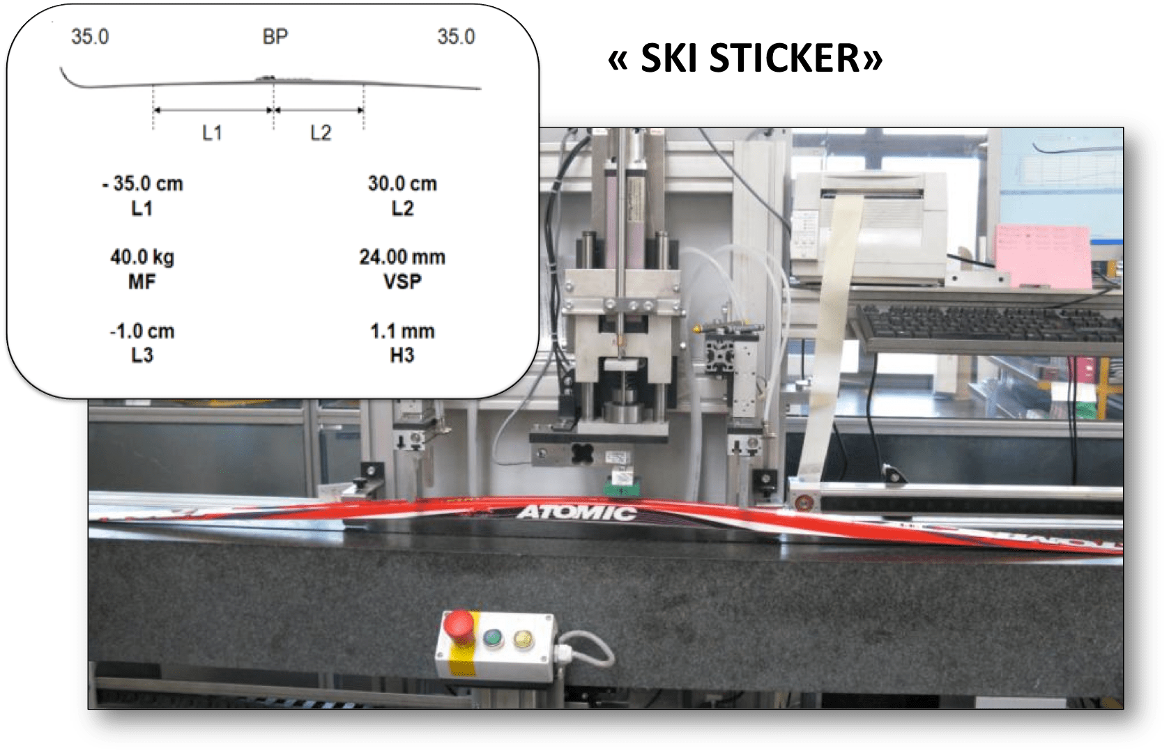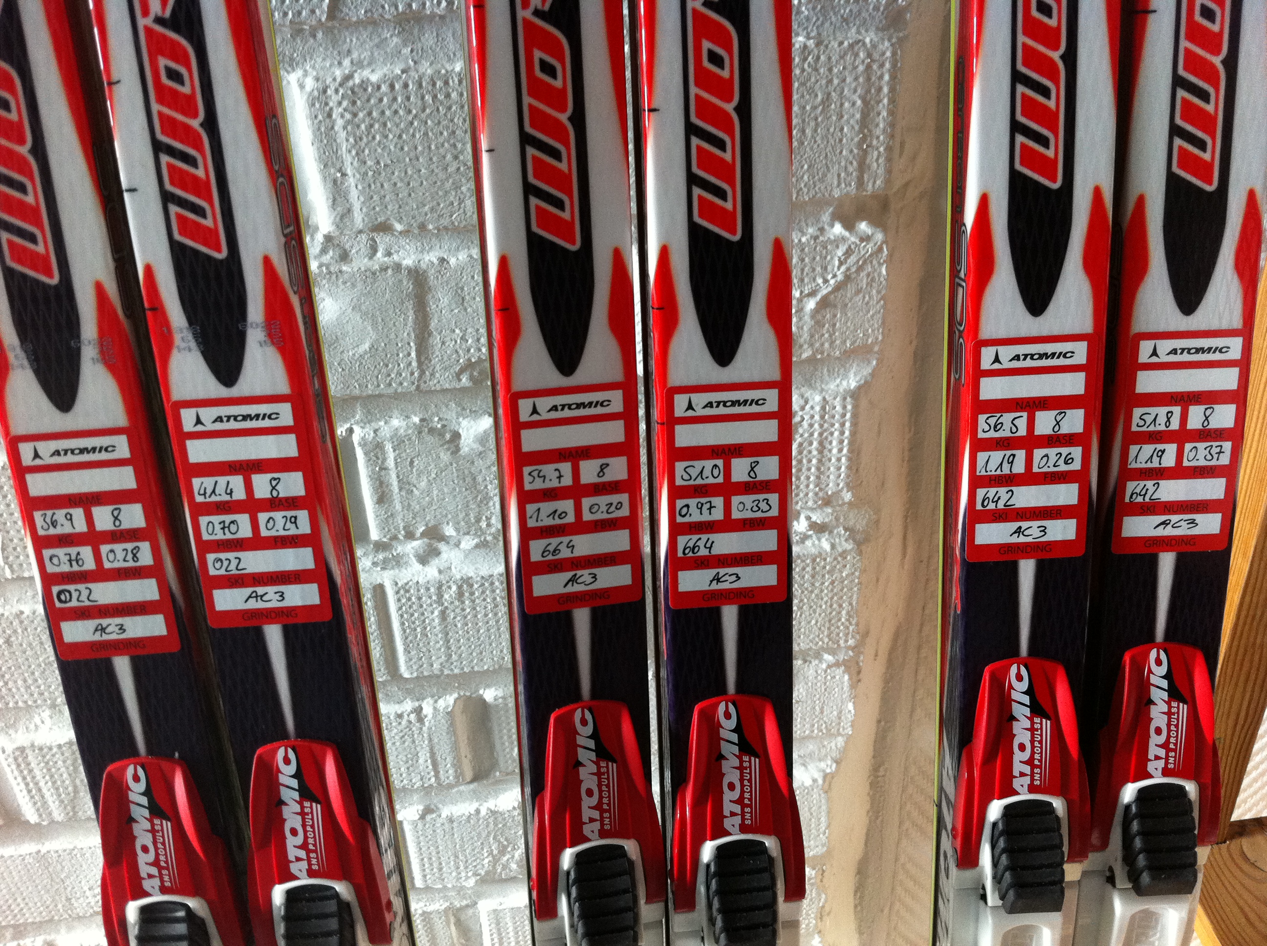 The goal is to make sure that every ski sent to dealers worldwide has a flawless flex pattern. We want to make sure that Atomic race skis at any given dealer are of the same quality as the skis our athletes using to win Olympic Gold and to make it as easy as possible for ski shops to provide a perfect fit for their customers. We have come up with a new sticker (pictured below) we place on the Worldcup skis that provides all the flex information a consumer would need for a perfect fit. We provide formulas dealers can use to take the data on the sticker and use them for fitting the customer.