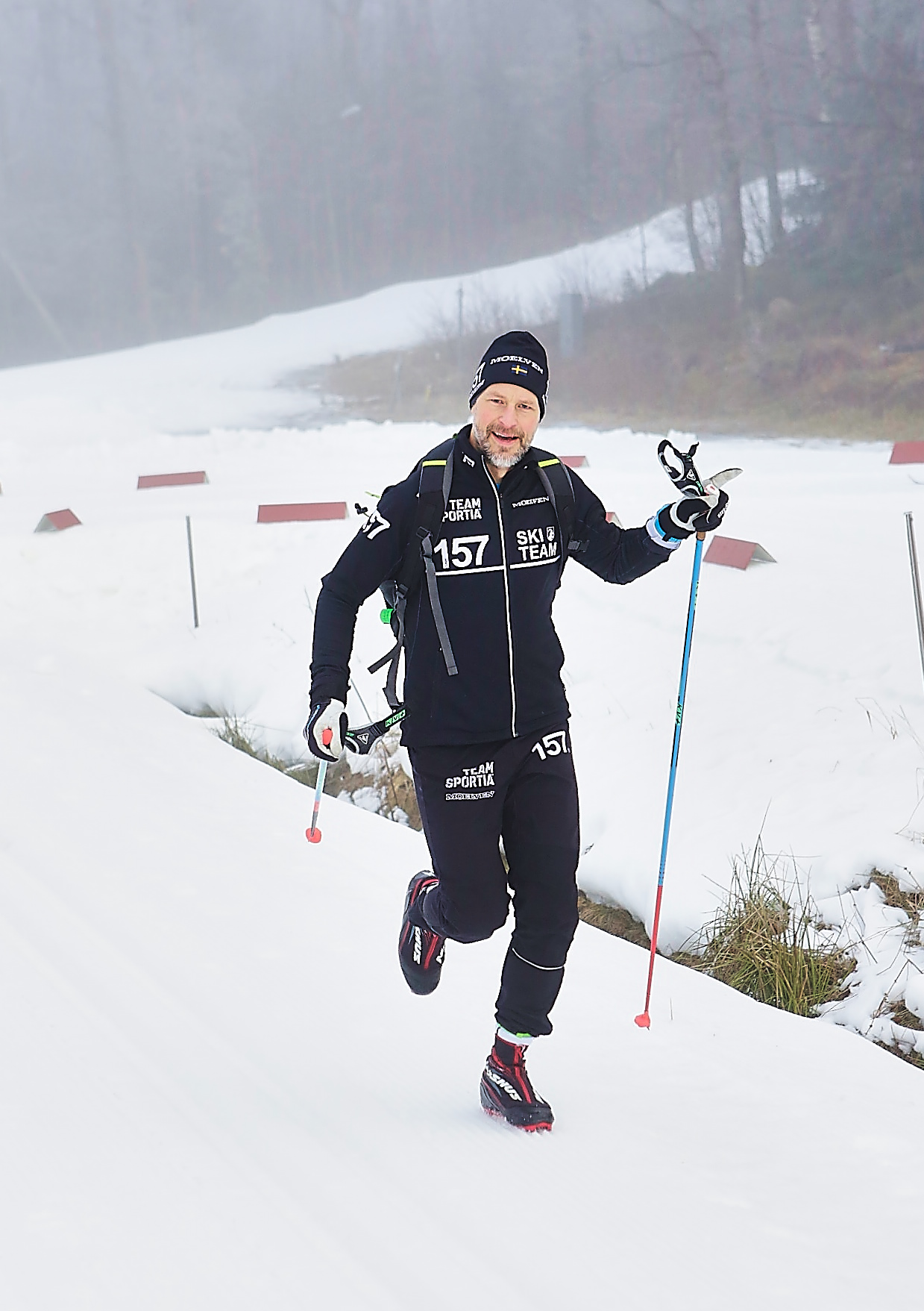 Jag efter uppvärmningen, där jag som vanligt kör ca 10-15 min plus eventuella skidtester